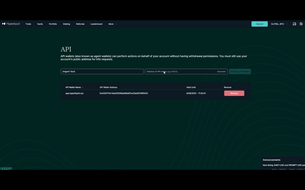 Create an API Key in HyperLiquid
