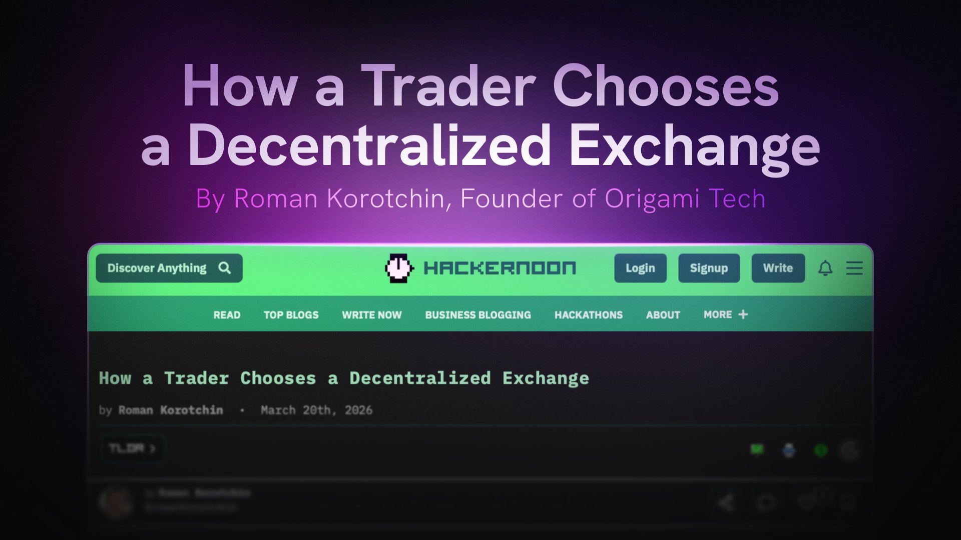 Origami Tech co-founder Roman Korotchin has published a new article on Hackernoon exploring how traders evaluate decentralized exchanges beyond surface-level metrics.